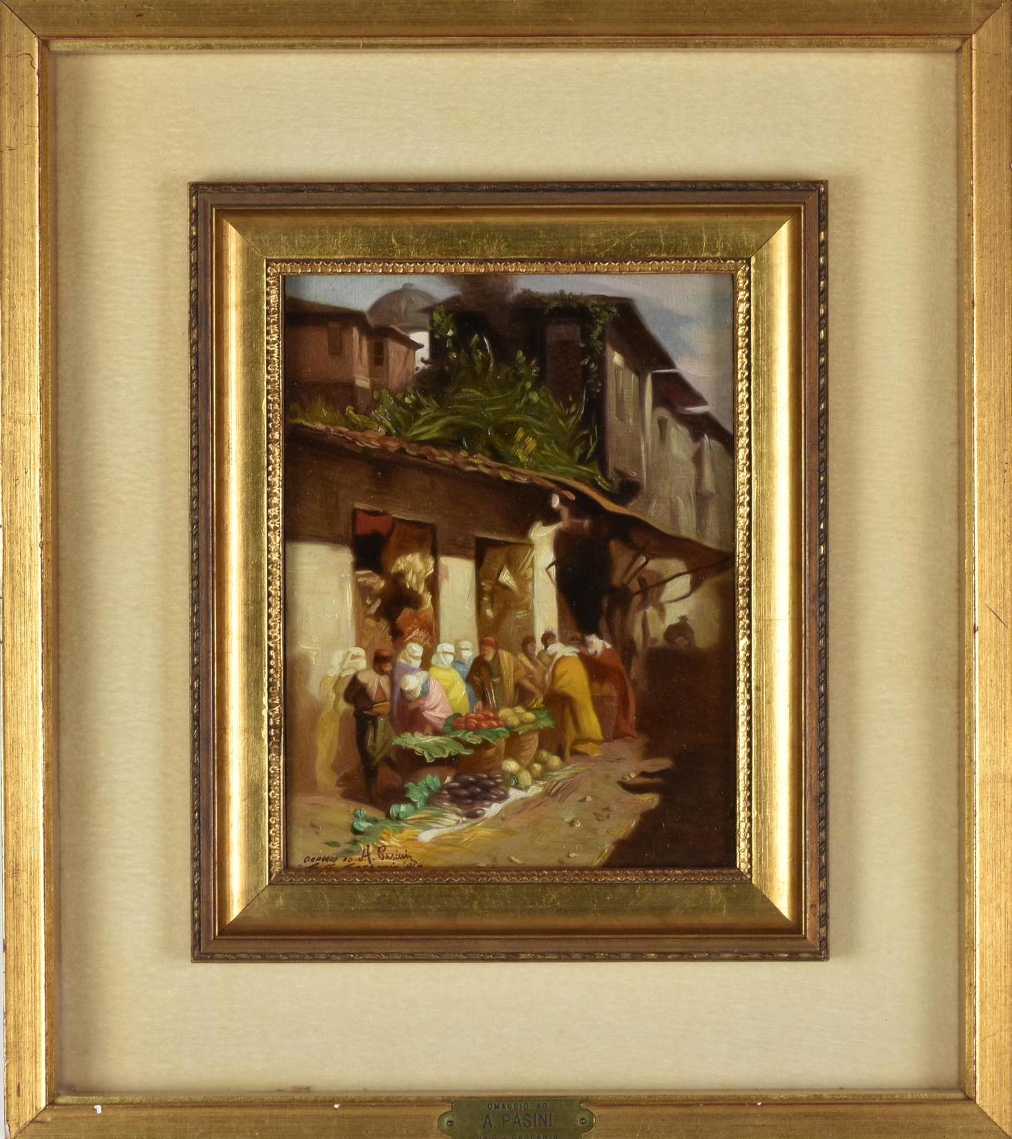 Gasparin Aleandro Giancarlo OMAGGIO A PASINI (MERCATO ARABO) olio su cartone,...