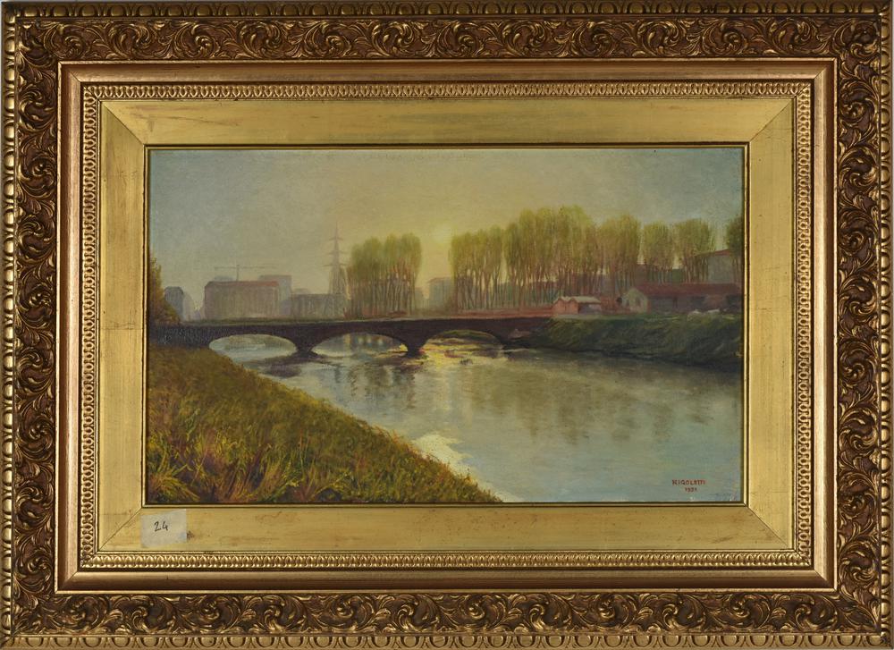 Rigoletti Luigi PAESAGGIO olio su tela, cm 30x50 sul fronte: firma e data...