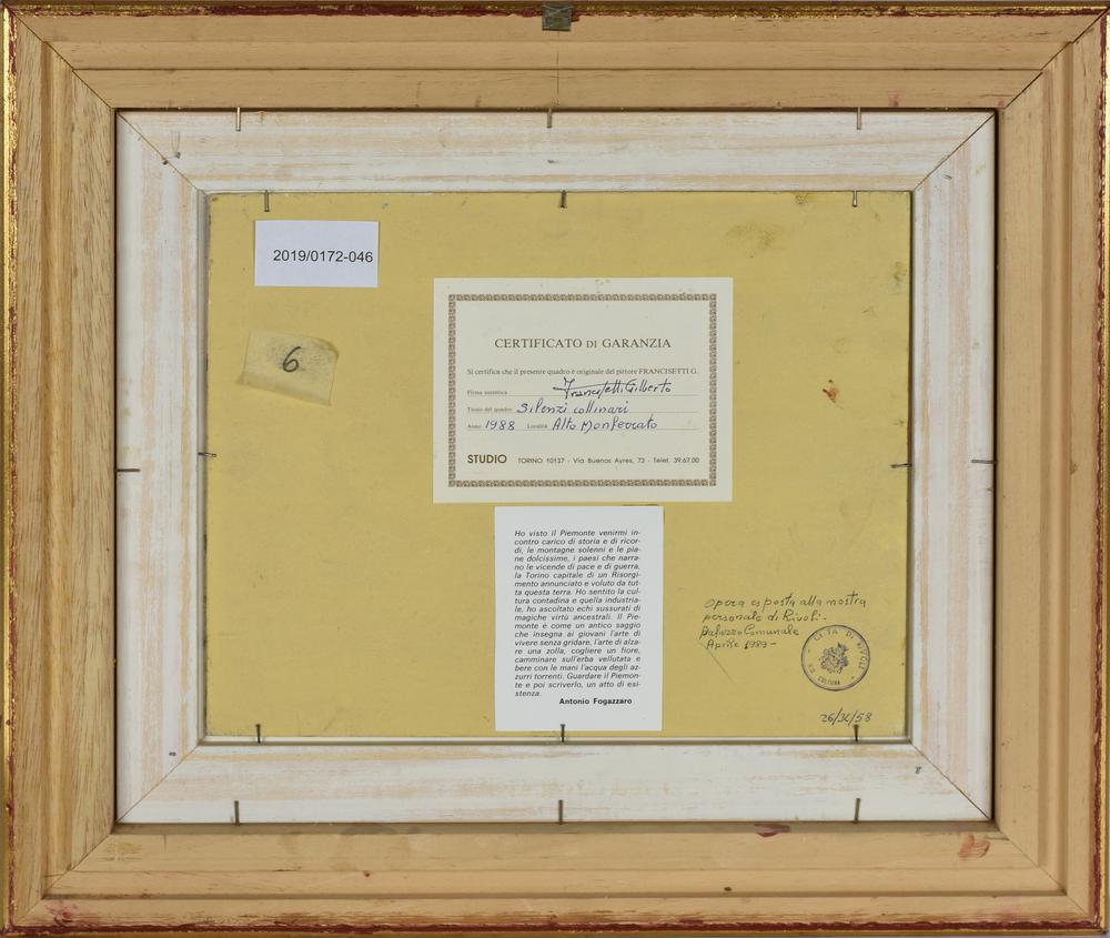 Francisetti Gilberto SILENZI COLLINARI ALTO MONFERRATO olio su cartone, cm...