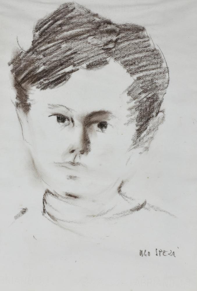 Spezi Ugo RITRATTO carboncino su carta Fabriano, cm 48x33 sul fronte: firma