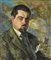 Gariazzo Pier Antonio RITRATTO DI ELIO QUAGLINO (ANNO DOMINI MCML AETATIS SUAE 34) olio su masonite, cm 60x50 sul fronte: firma, titolo e data eseguito nel 1950