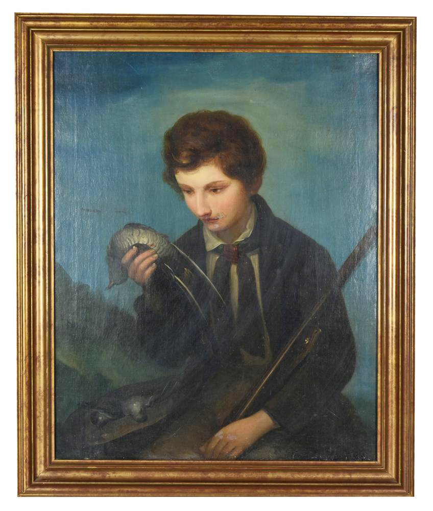 Anonimo IL GIOVANE CACCIATORE olio su tela, cm 61x48