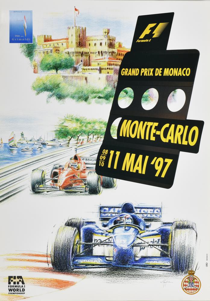 MANIFESTO GRAND PRIX DE MONACO 97 cm 59,5x42 Manifesto originale del Gran Premio di Montecarlo del 1997. Creazione E. Giampaoli, AIP MONACO, FIA FORMULA 1 WORLD CHAMPIONSHIP ORIGINAL POSTER 23 27/64 x 16 17/32 in