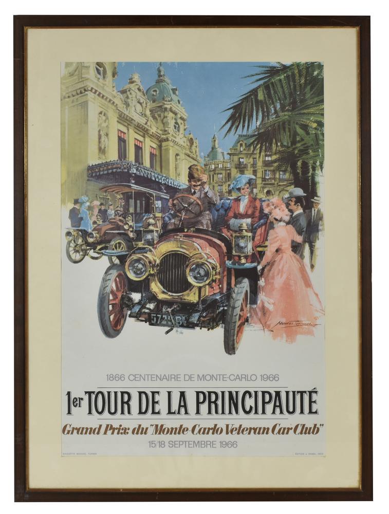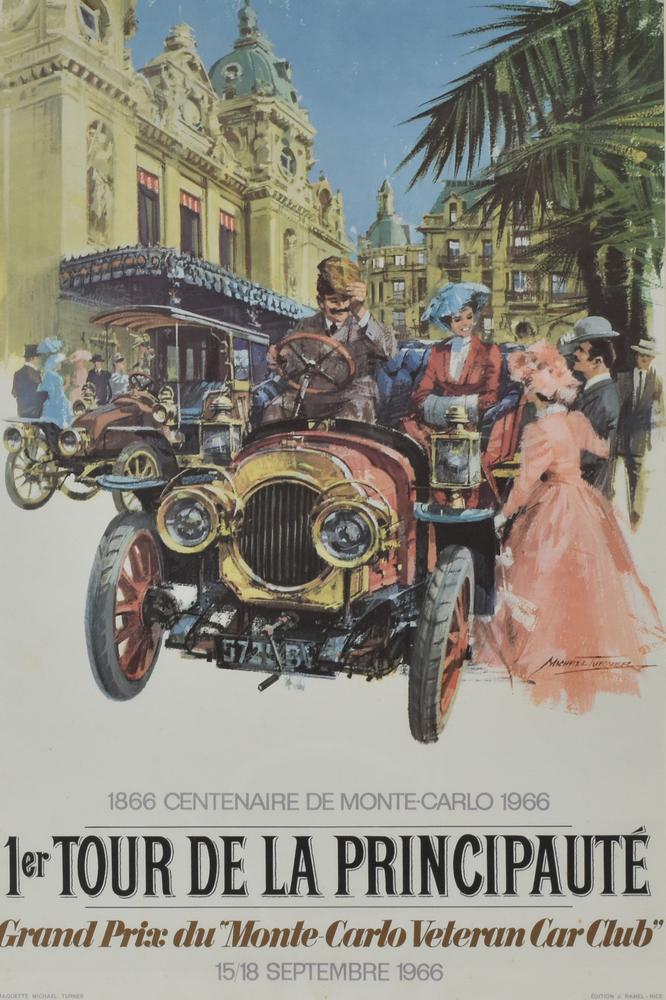 Turner Michael 1er TOUR DE LA PRINCIPAUTE 1966 (GRAND PRIX DU MONTE CARLO VETERAN CAR CLUB) manifesto litografico, cm 60x40 Edition J. Ramel - Nice