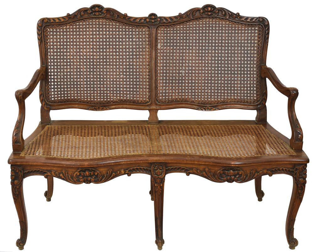 Divanetto in noce scolpito altezza seduta cm 42, larghezza cm 122 fine XIX secolo A XIX Century sculptured walnut sofa