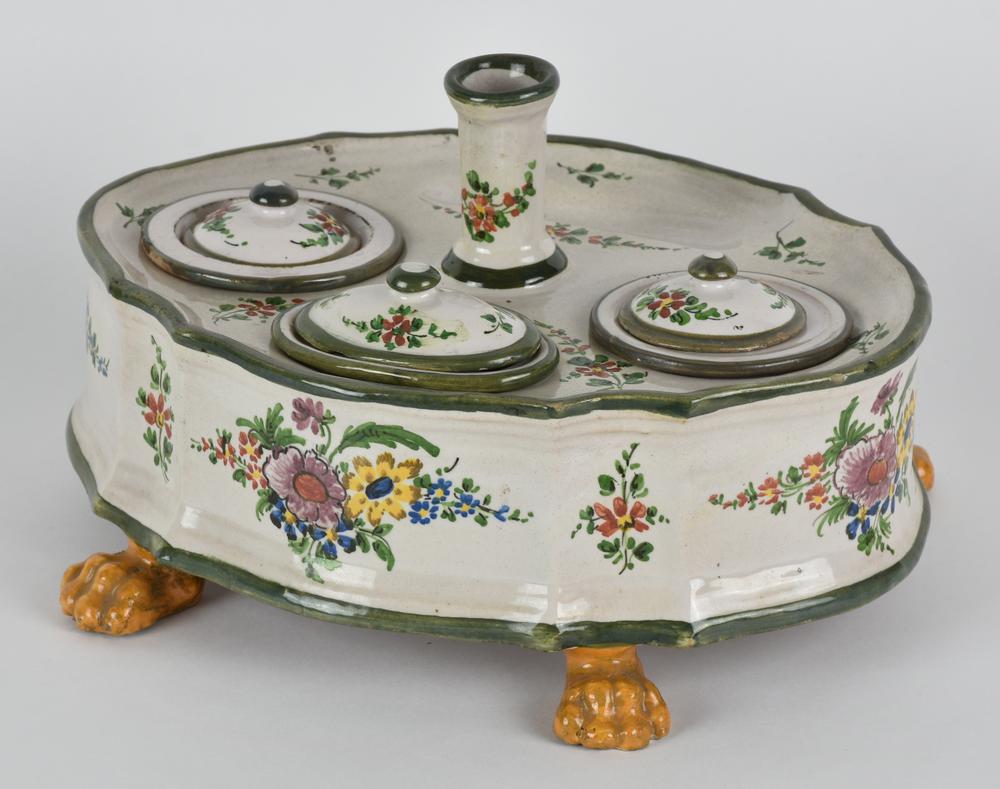 CALAMAIO Calamaio in ceramica dipinta a motivi floreali Italia Centrale, prima metà XIX secolo cm 13x19x24 Lievi difetti