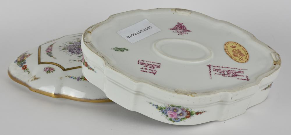 SCATOLA IN PORCELLANA DI LIMOGES Scatola in porcellana bianca di Limoges con decori floreali Francia, seconda metà XX secolo cm 10x26x19 Buone condizioni
