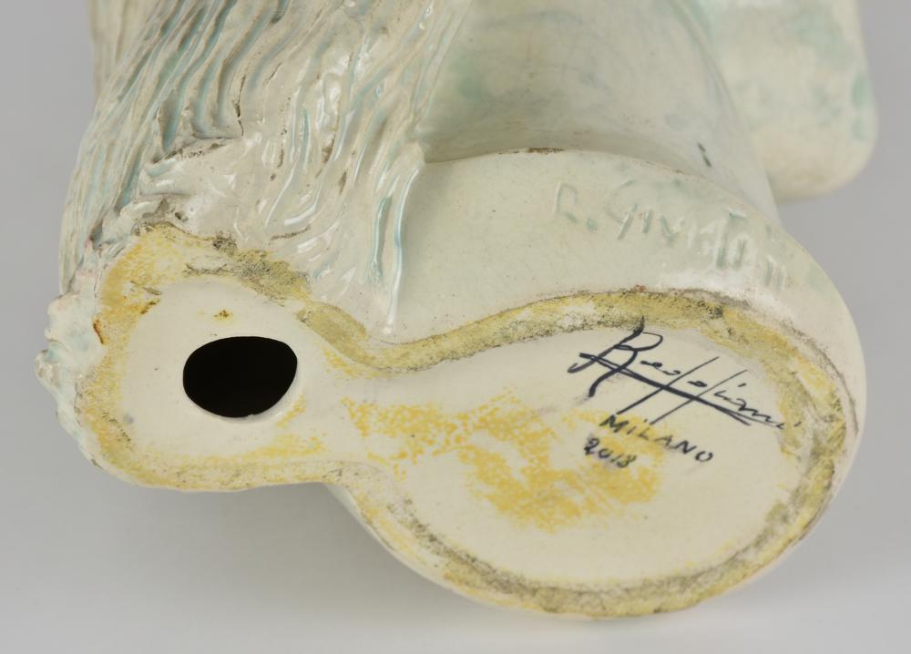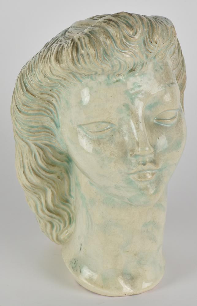 Ruffo Giuntini SCULTURA IN CERAMICA Scultura in ceramica raffigurante volto di giovane donna sulla base: firma incisa sotto la base: firma della manifattura Ceramiche Roggiani, Milano Italia, prima metà XX secolo h cm 25 Lievi difetti