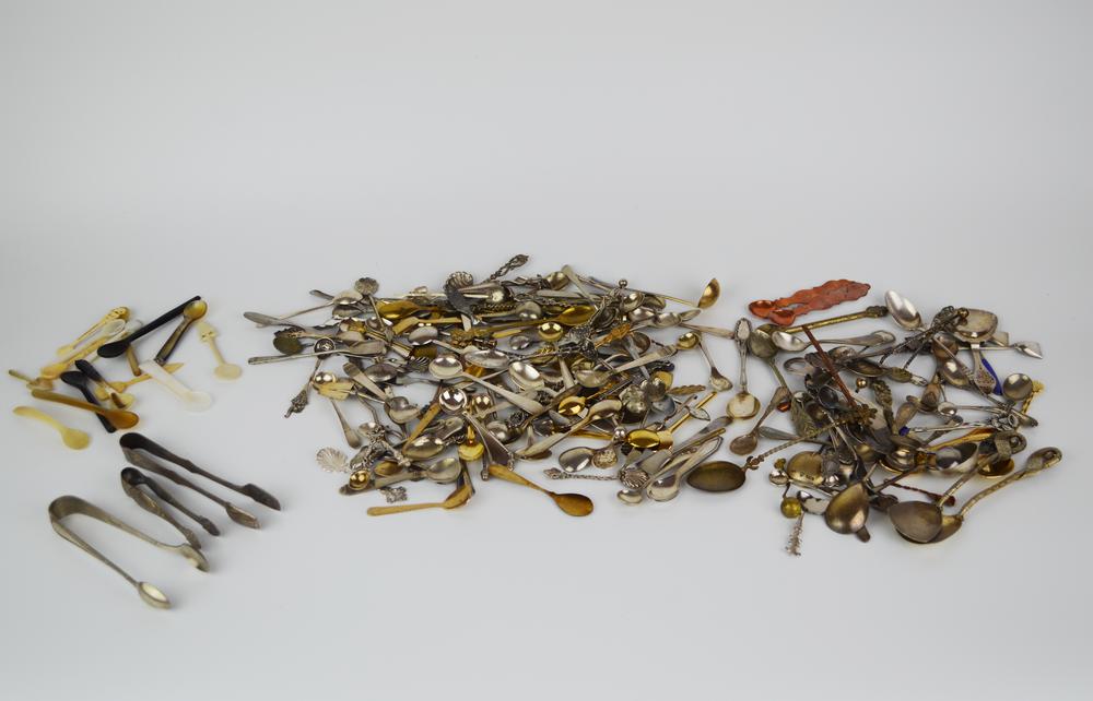 Lotto 234 | Tre mollette da zucchero in metallo argentato; 168 cucchiaini da saliera in...