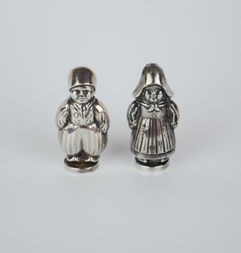 Lotto 237 | Coppia di saliere in argento modellati a olandesini; g 44 Olanda; sec. XX (2)