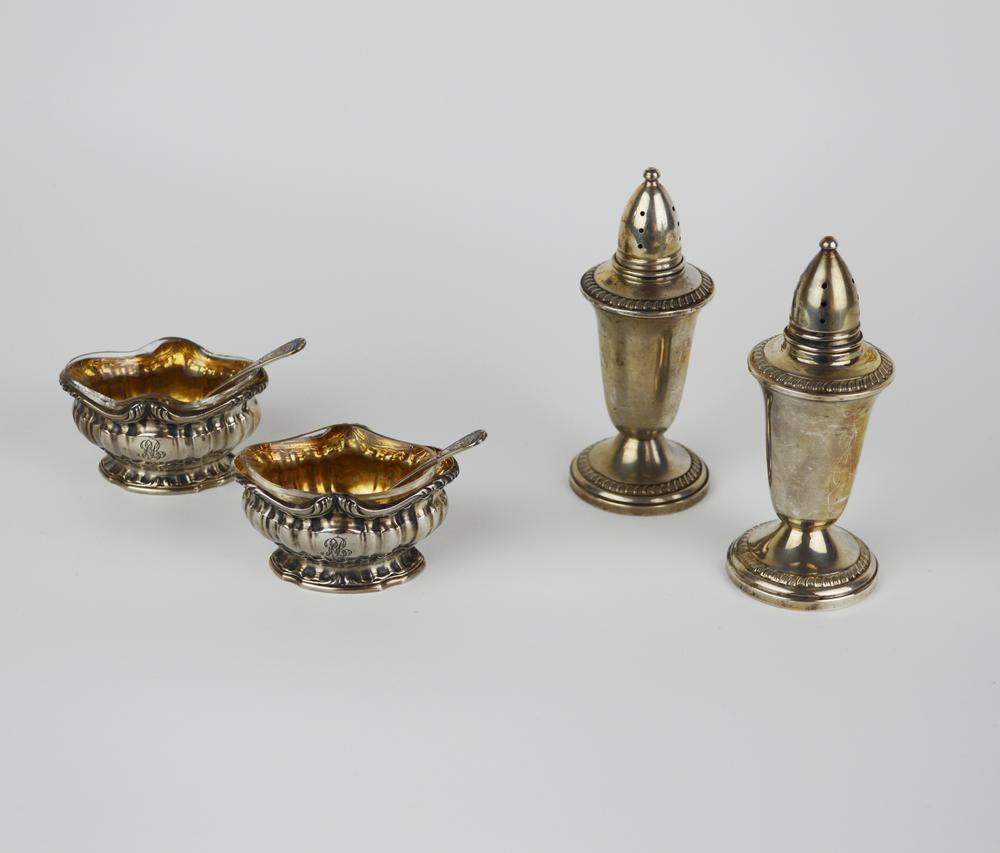Lotto 255 | Coppia di saliere in argento modellata a balaustro e coppia di saliere in...
