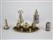 Saliera Tiffany in argento traforato e vetro blu; piccola saliera Tiffany in argento; saliera Gorham in argento;g 121. Vassoietto in metallo argentato con saliere e senapiera in metallo e vetro blu; saliera in metallo argentato e vetro blu Inghilterra e USA sec. XX (7)