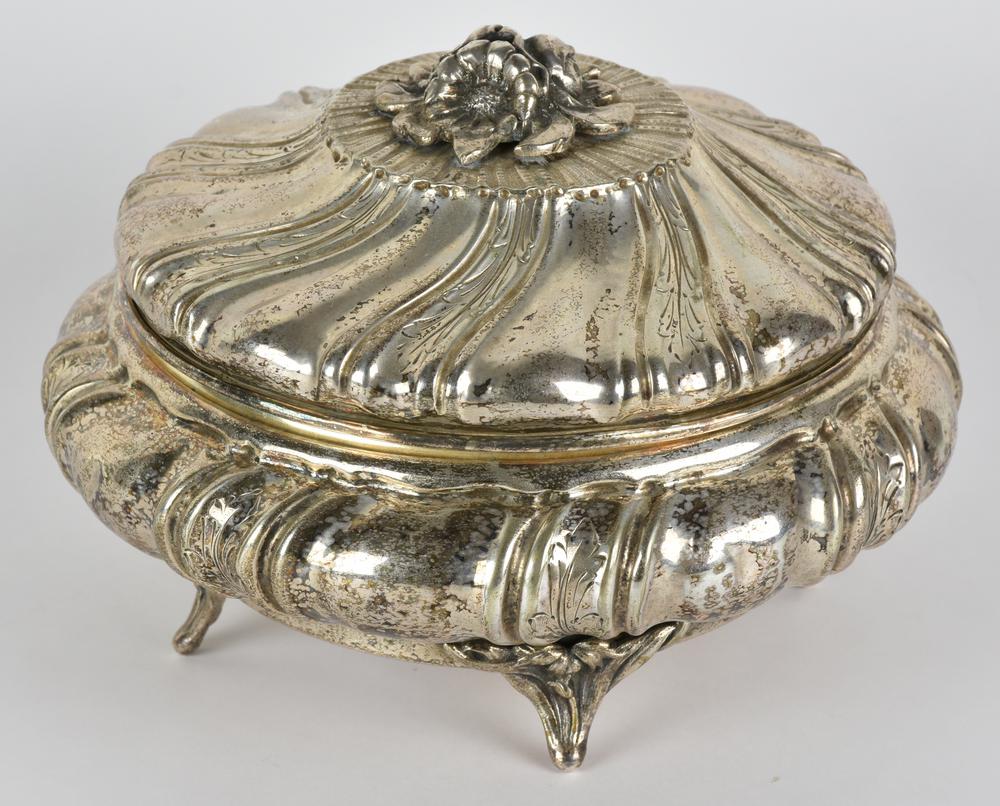 Lotto 277 | SCATOLA IN METALLO ARGENTATO Italia, met? XX secolo h cm 14, diam cm 22