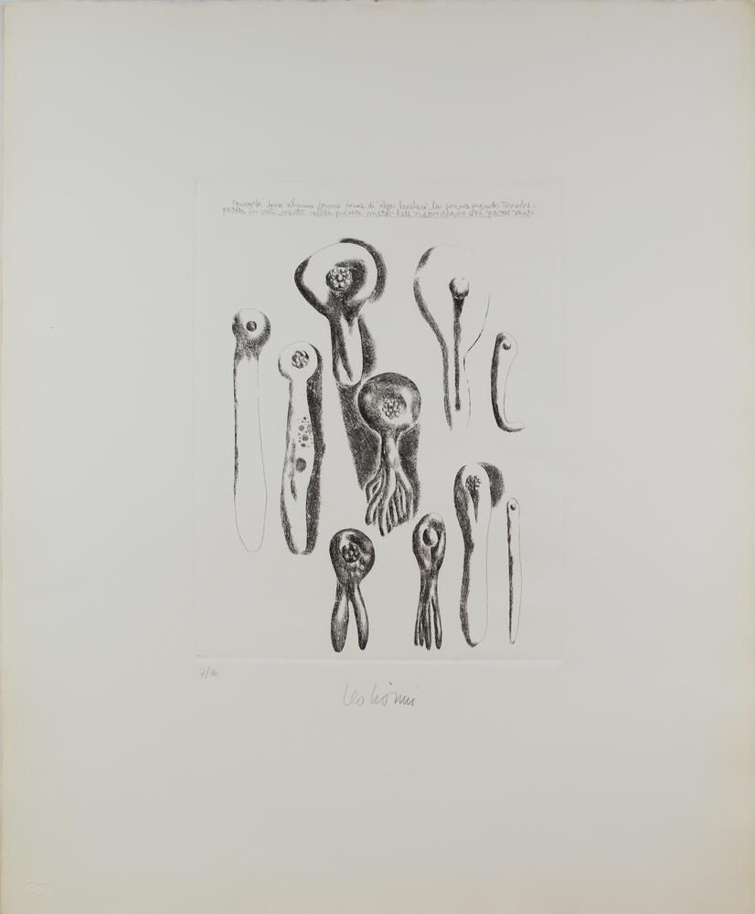 Lotto 312 | Leo Lionni SENZA TITOLO Acquaforte. mm 315x242. Foglio: mm 605x505. Firmata e...