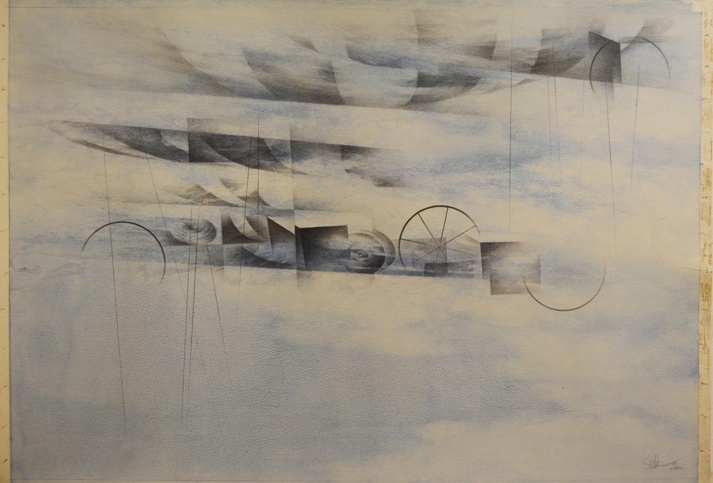 COMPOSIZIONE acquerello su cartone, cm 104,5x149,5 firmato e datato sul rtro:...