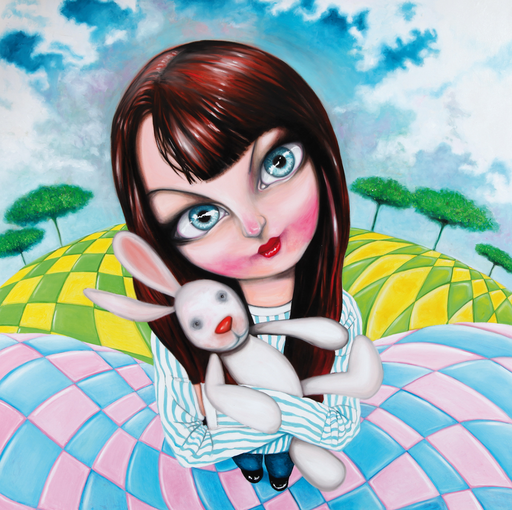 ANGELO BARILE Torino 1960 Alice e Bianconiglio. 2011 olio su tela cm. 100x100, firma e titolo al retro, dichiarazione d'autenticità dell'artista su foto.
