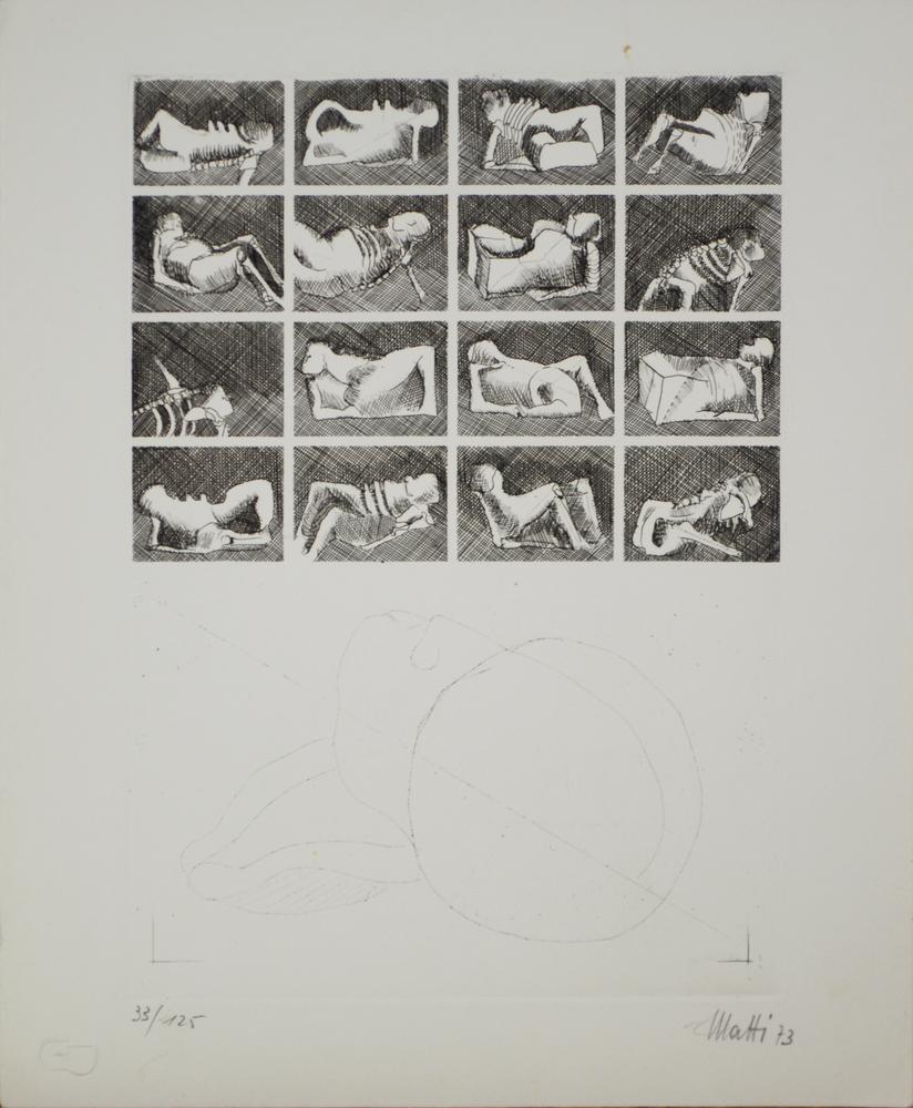II) Senza titolo. 1973. Acquaforte. mm 240x165. Foglio: mm 292x232.