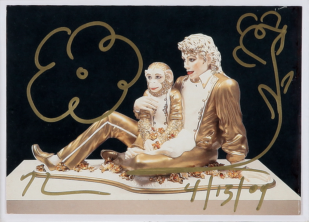 JEFF KOONS York (Pennsylvania) 1955  Michael Jackson and bubbles, 2009 marker su cartolina dell'artista del 1988 cm. 12x17, sigla dell'artista in basso a sinistra, anno in basso a destra, certificato di provenienza della Galleria Allegrini Arte (Rudiano-BS) allegato.