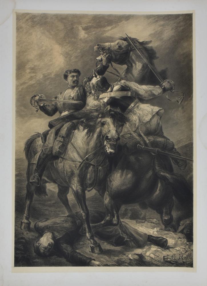 Roll Alfred Philippe Scontro di cavalieri. 1879 litografia, cm 72x55,5...