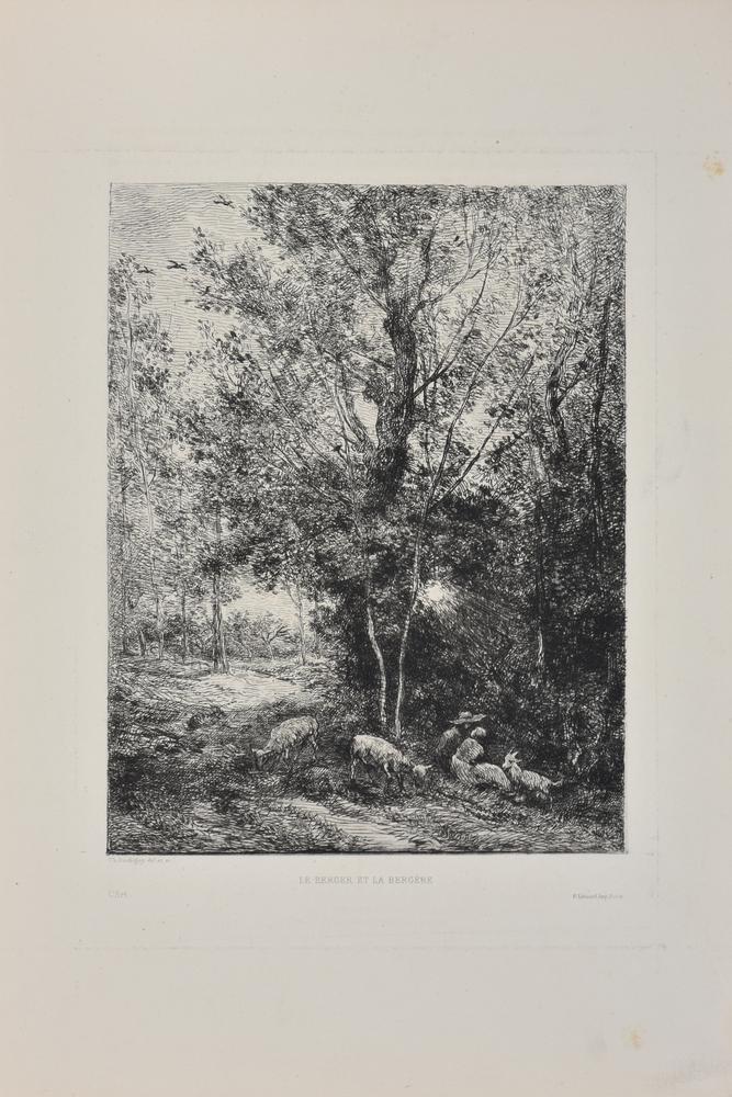 Charles Daubigny LE BERGER ET LA BERGERE. 1868 Acquaforte. mm 300x220....