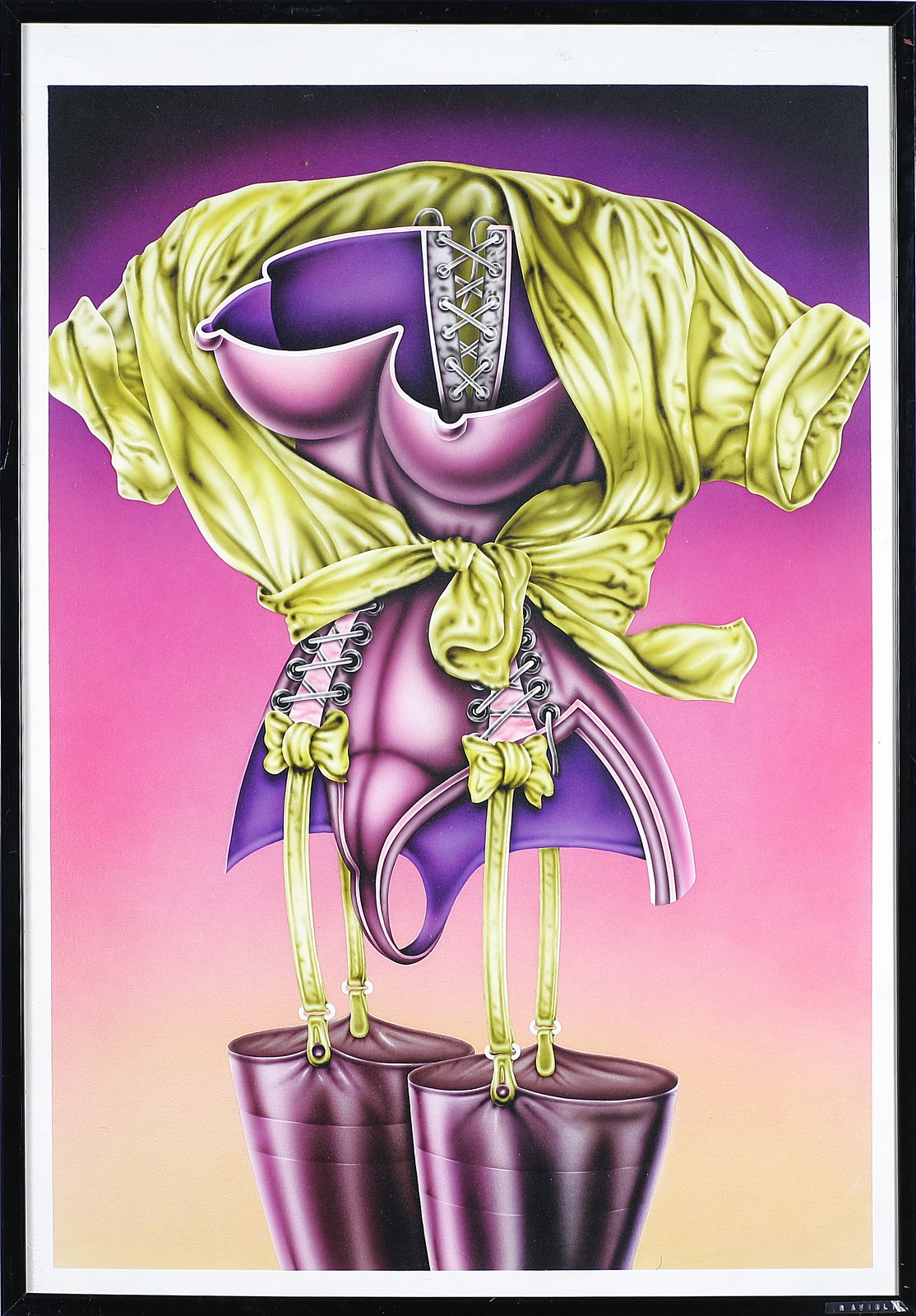 NON IDENTIFICATO AUTORE Untitled. Airbrush on paper. Cm 50,00 x 70,00. . Cornice presente