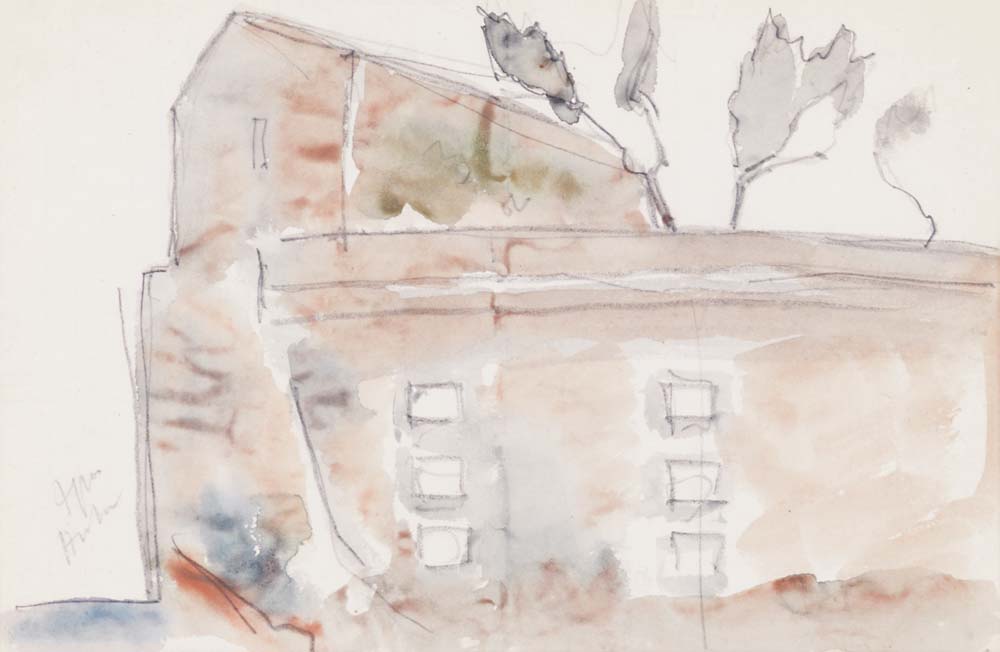 ANSELMO BUCCI Fossombrone (Ps) 29/11/1887 - Monza (Mi) 15/11/1965 Case, (1950) acquerello e matita su carta cm. 15,7x24, sigla dell'artista in basso a destra.