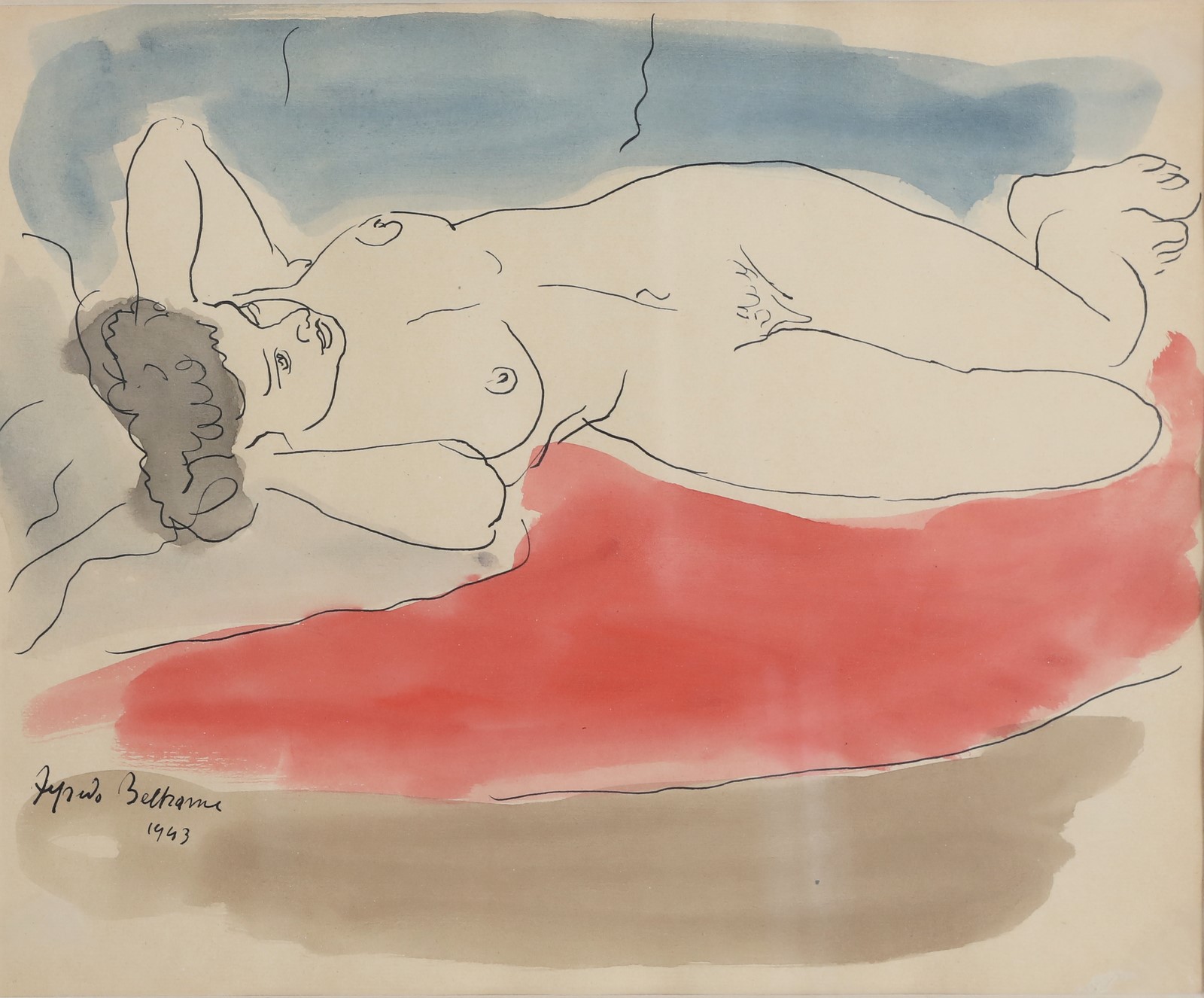 BELTRAME ALFREDO (1901 - 1996) Untitled. 1943. Mixed media on paper. Cm 30,00 x 22,50. Signature and year lower left. Cornice presente