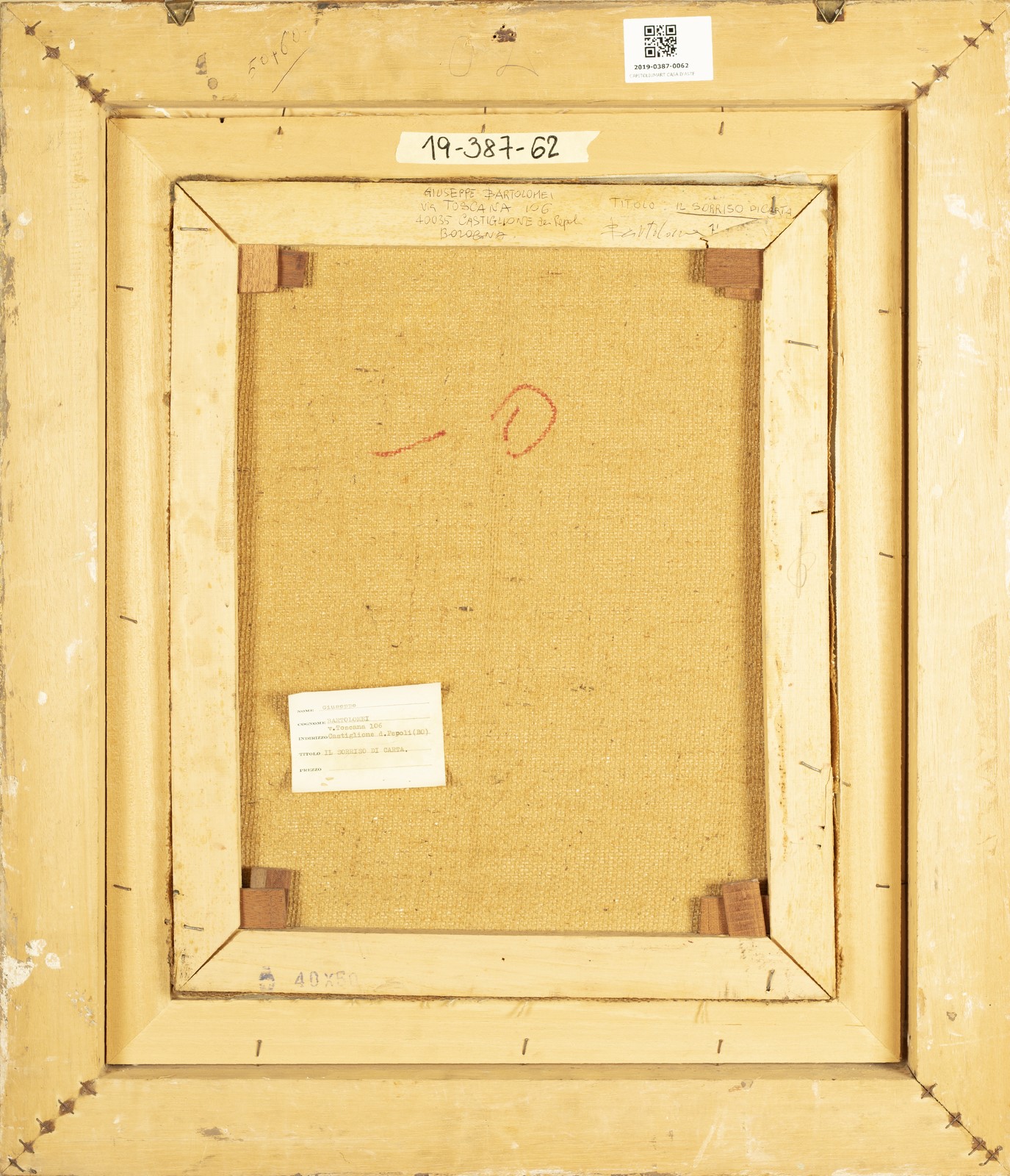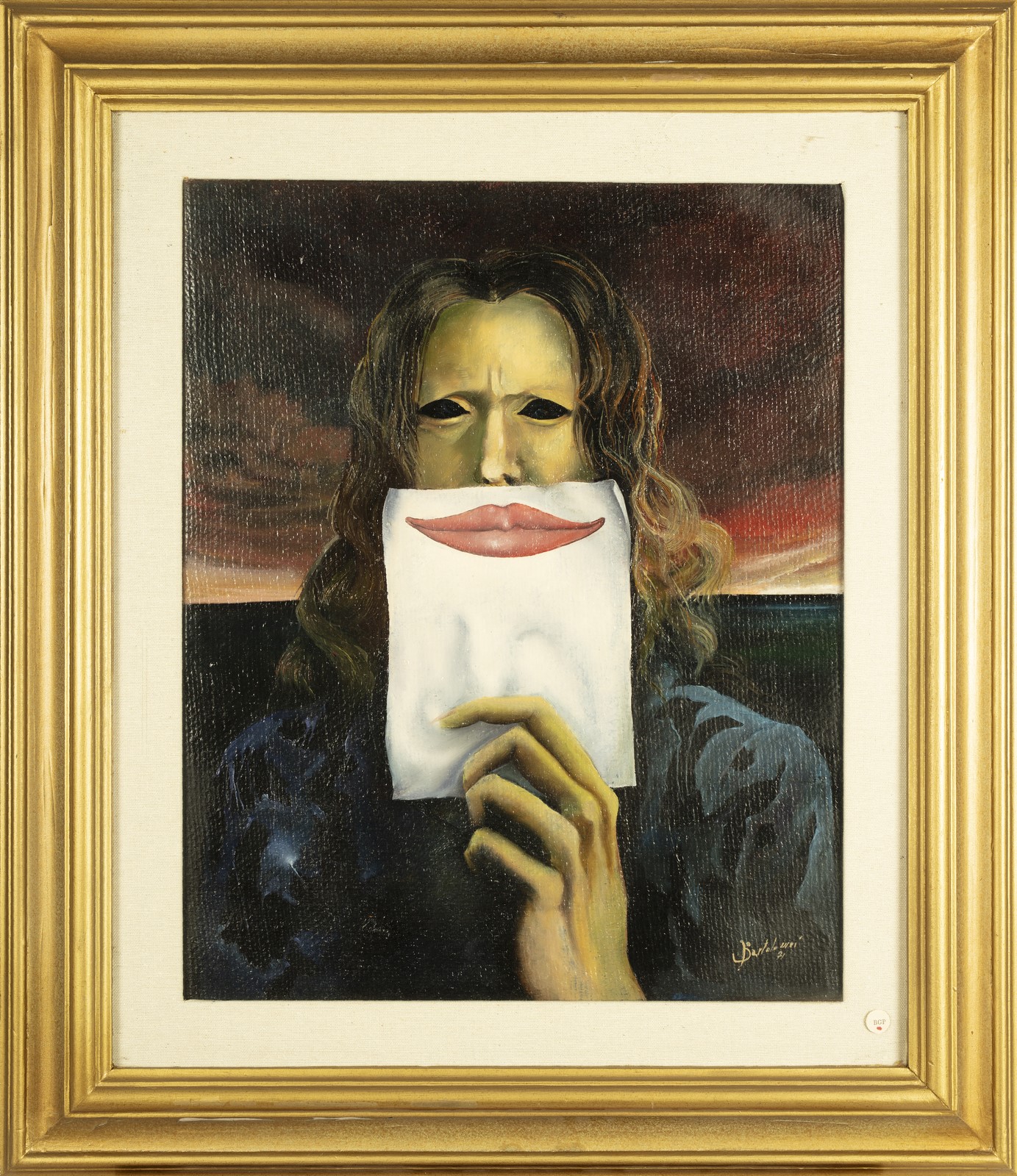 NON IDENTIFICATO AUTORE Untitled (Il sorriso di carta). Oil on canvas . Cm 40,00 x 50,00. Signature (Giuseppe Bartolemi) lower right and at the back.. Cornice presente