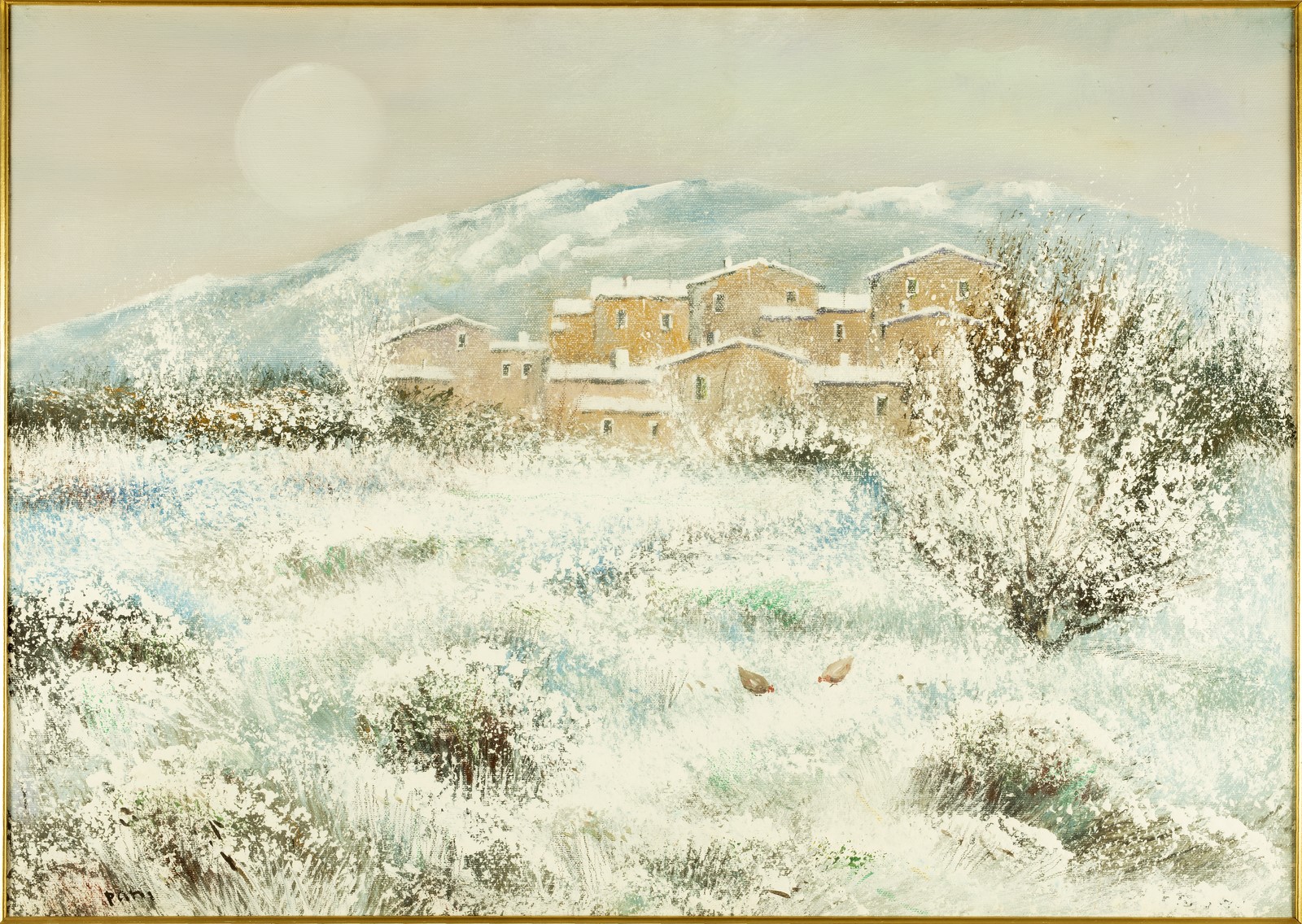 NON IDENTIFICATO AUTORE Senza titolo. Tempera su tela. Cm 70,00 x 50,00. Firma (Antonio Pani) in basso a sinistra e al retro.