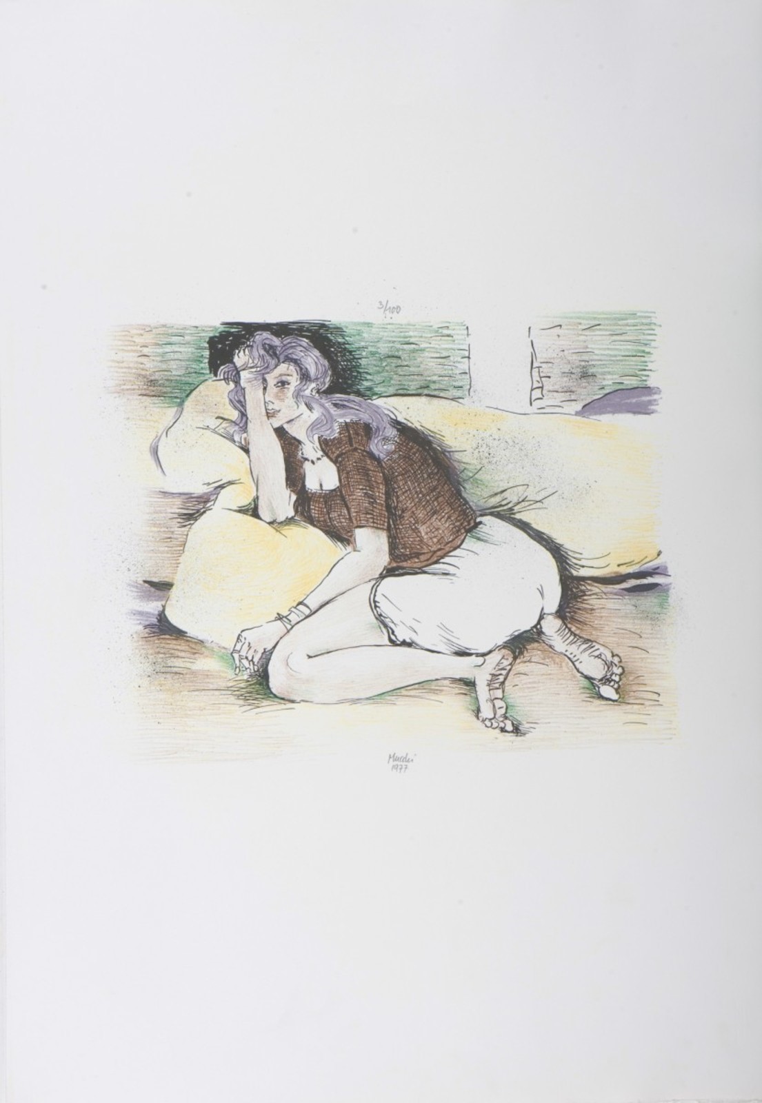 MUCCHI GABRIELE (1899 - 2002) Untitled. 1977. Lithograph. Cm 70,00 x 50,00. 3/100. Edition upper in pencil. Signature and year lower in pencil.