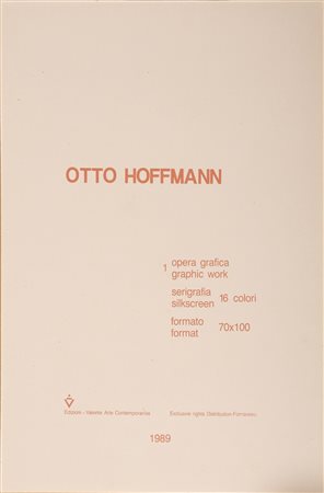 HOFFMANN OTTO (1907 - 1996) Otto Hoffmann (cartella). 1989. Serigrafia. Cm 100,00 x 70,00. 24/100. Tiratura, firma e anno a matita in basso. Edizioni Valente Arte Contemporanea. Stamperie Oncolor, Cantù. Confezione originale.