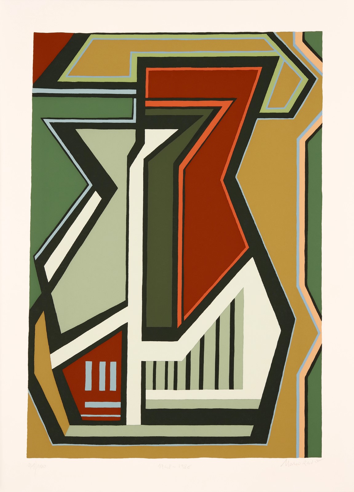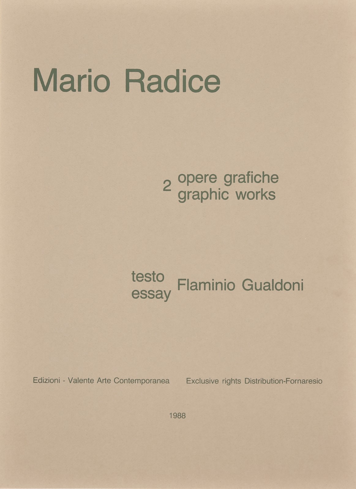RADICE MARIO (1898 - 1987) Folder composed of n.2 sheets. 1988. Silkscreen. Cm 50,00 x 70,00. 91/100. Edition and signature lower in pencil. Valente Contemporary Art Edition, texts by Flaminio Gualdoni. Original box.