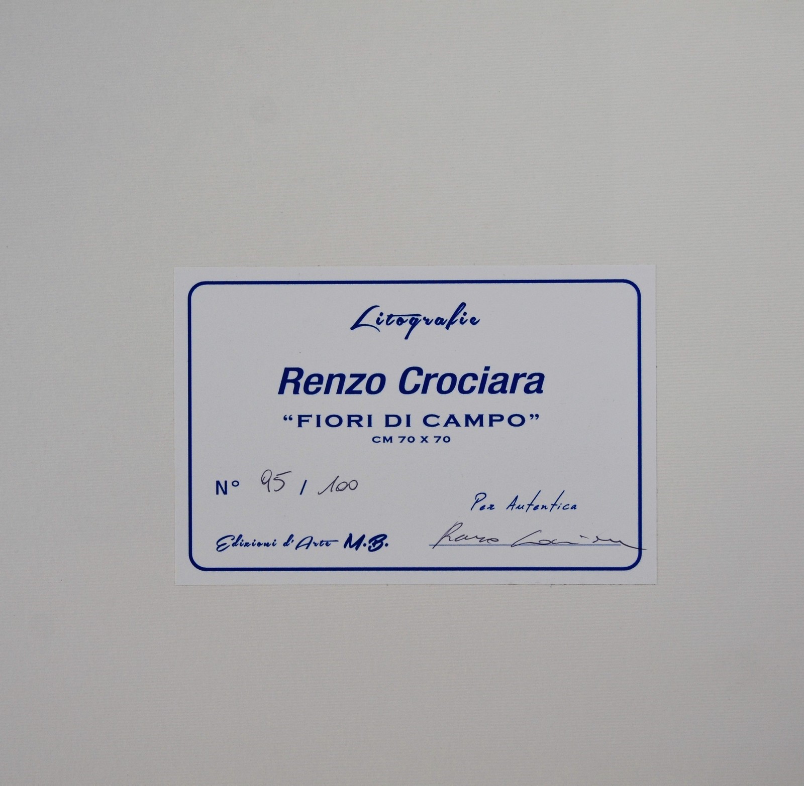 CROCIARA RENZO (n. 1950) Fiori di Campo. Serigrafia. Cm 70,00 x 70,00. 95/100. Tiratura e firma in basso a matita. Al retro cartiglio descrittivo dell'artista.