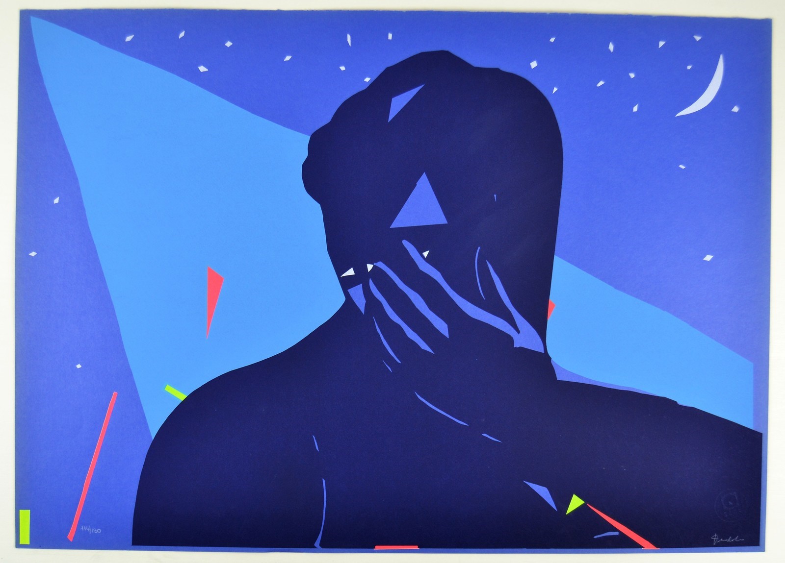 NON IDENTIFICATO AUTORE Senza titolo. Serigrafia. Cm 70,00 x 50,00. 114/130. Tiratura e firma in basso.