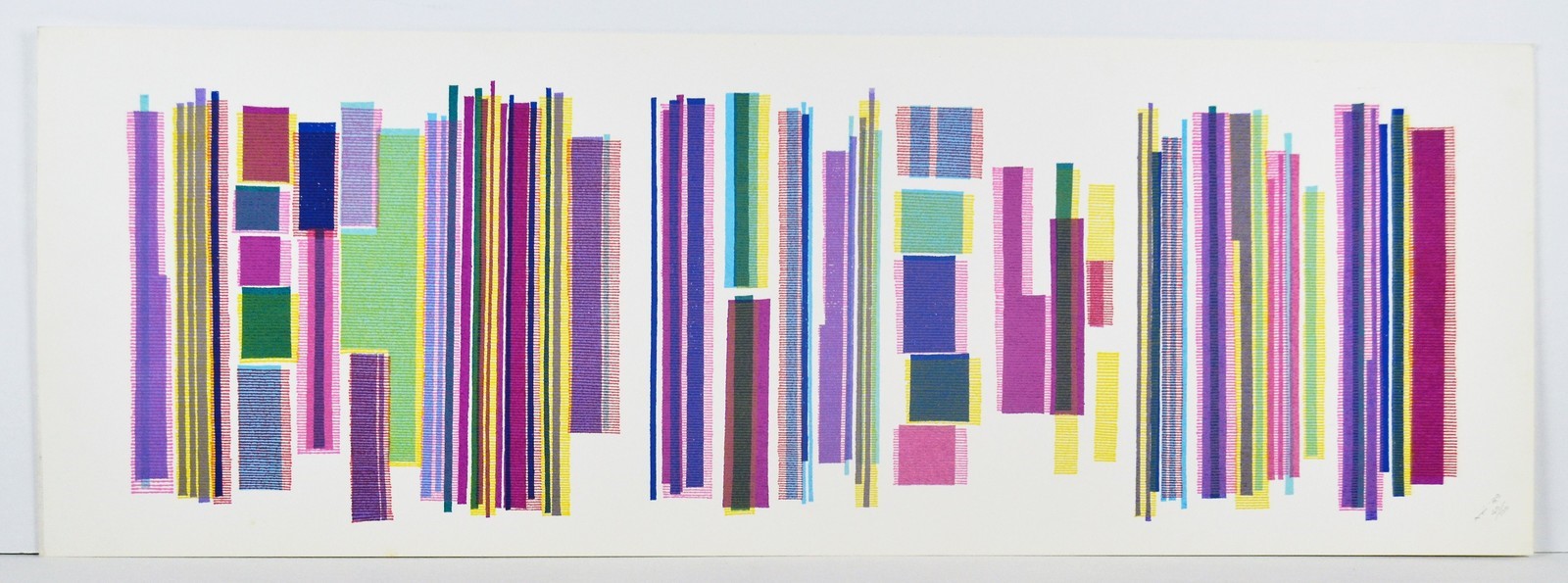 NON IDENTIFICATO AUTORE Senza titolo. 1989. Serigrafia. Cm 100,00 x 35,00. 40/100. Tiratura e firma (Adi) in basso a matita.