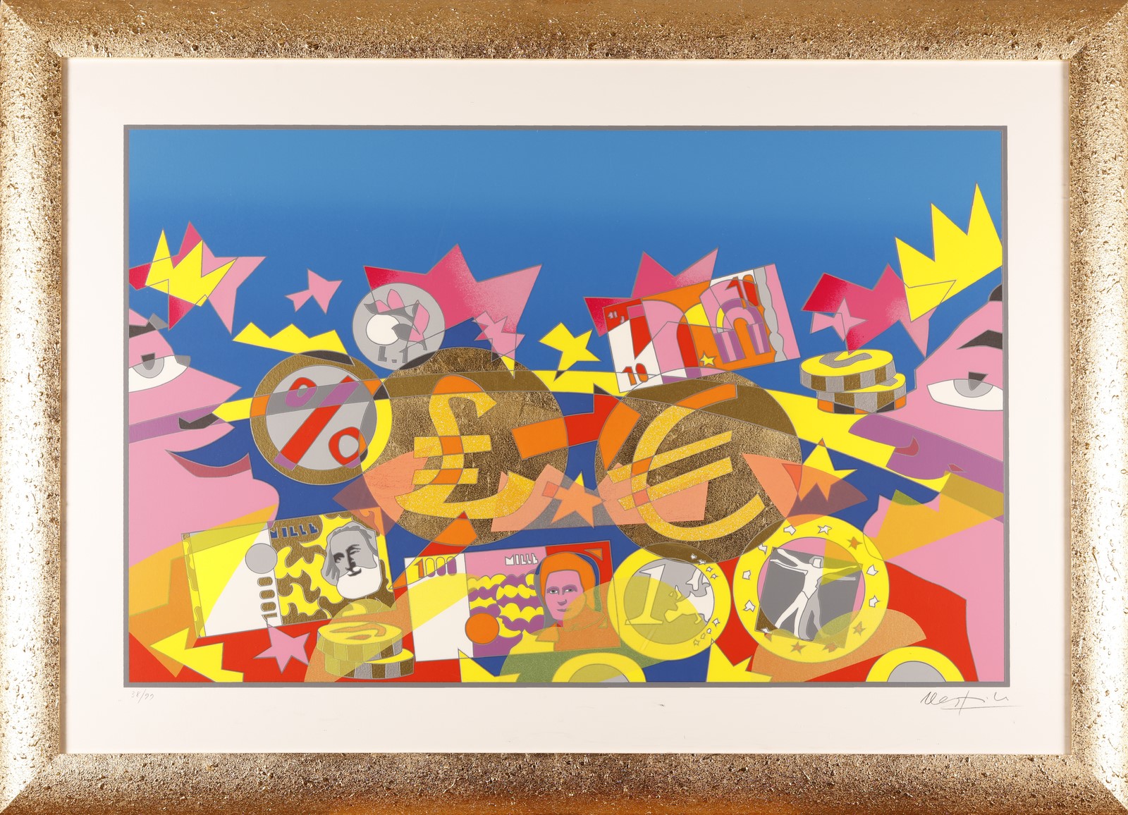 NESPOLO UGO (n. 1941) Untitled (La lira). Silkscreen. Cm 100,00 x 70,00. 38/99. Edition and signature lower in pencil. Gigart Artfinance authenticity certificate. Cornice presente