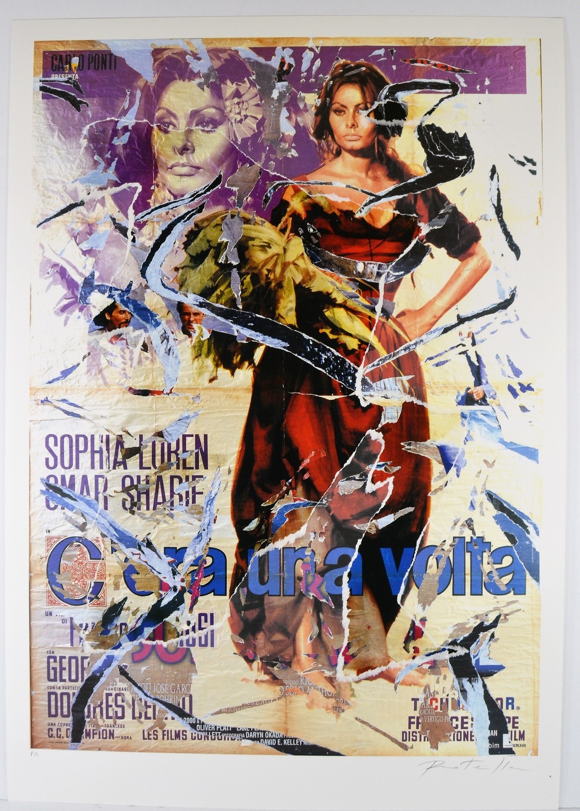 ROTELLA MIMMO (1918 - 2006) C'era una volta. Litodecollage. Cm 100,00 x 70,00. P.A. Tiratura e firma in basso a matita. Timbro a secco Fondazione Mimmo Rotella, Milano in basso a sinistra. Pubblicazione: Mimmo Rotella - multiples décollages a cura di Elena Pontiggia, Silvana Editoriale, 2005, p. 58.