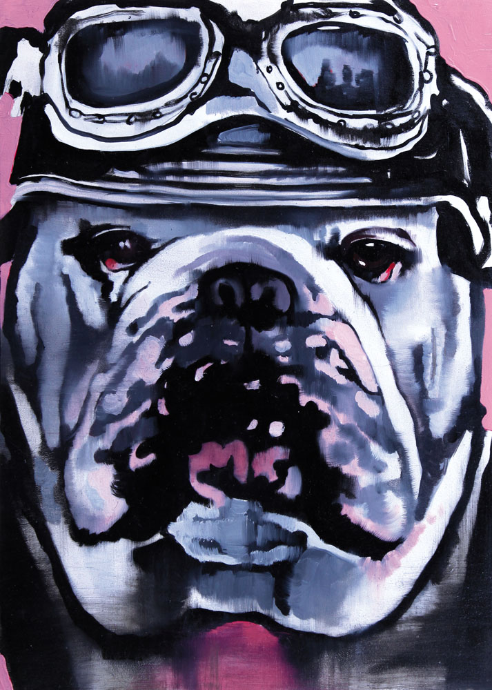 CLEONICE GIOIA Colleferro (Roma) 12/01/1976  Cantiere dog, 2011 tecnica mista su tela cm. 70x50, firma, titolo e anno al retro, dichiarazione d'autenticità dell'artista su foto, opera senza cornice.