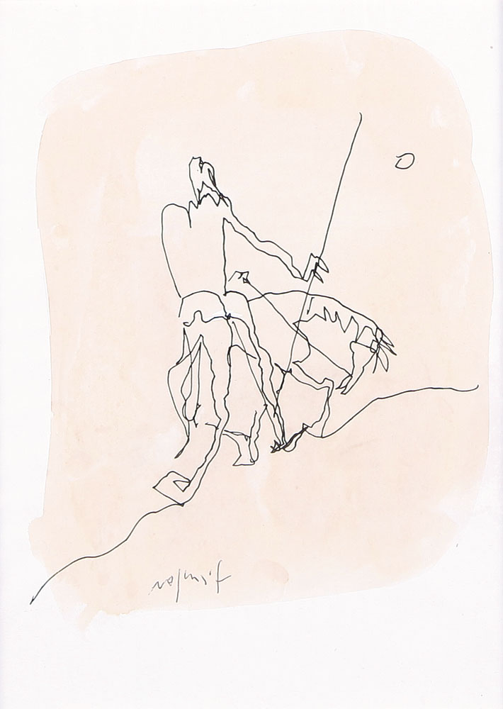FRANCO ROGNONI Milano 20/09/1913 - Milano 11/03/1999 Don Chisciotte tecnica mista su carta intelata cm. 29,5x21, firma in basso a sinistra, dichiarazione d'autenticità dell'artista su foto.