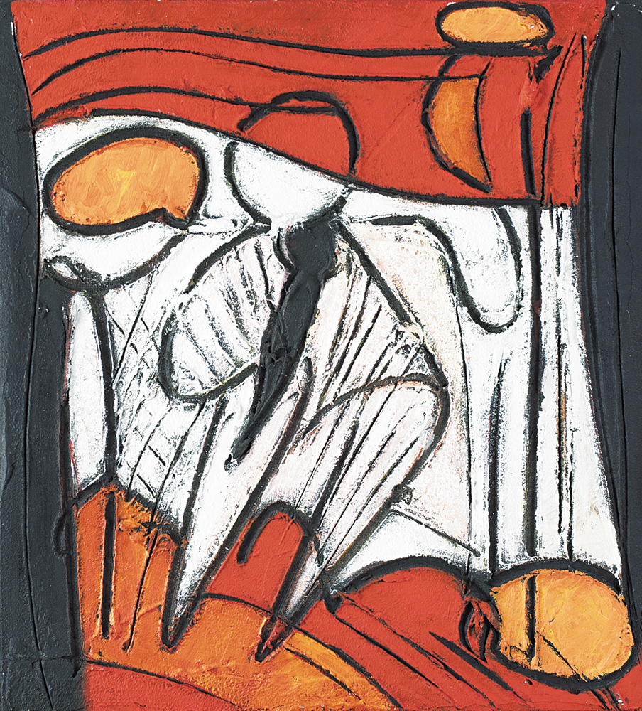 SILVANO SPESSOT Cormons 1957  La recita, 2007 tecnica mista su tela cm. 55x50, titolo, firma, anno e tecnica al retro, dichiarazione d'autenticità dell'artista su foto, opera senza cornice.