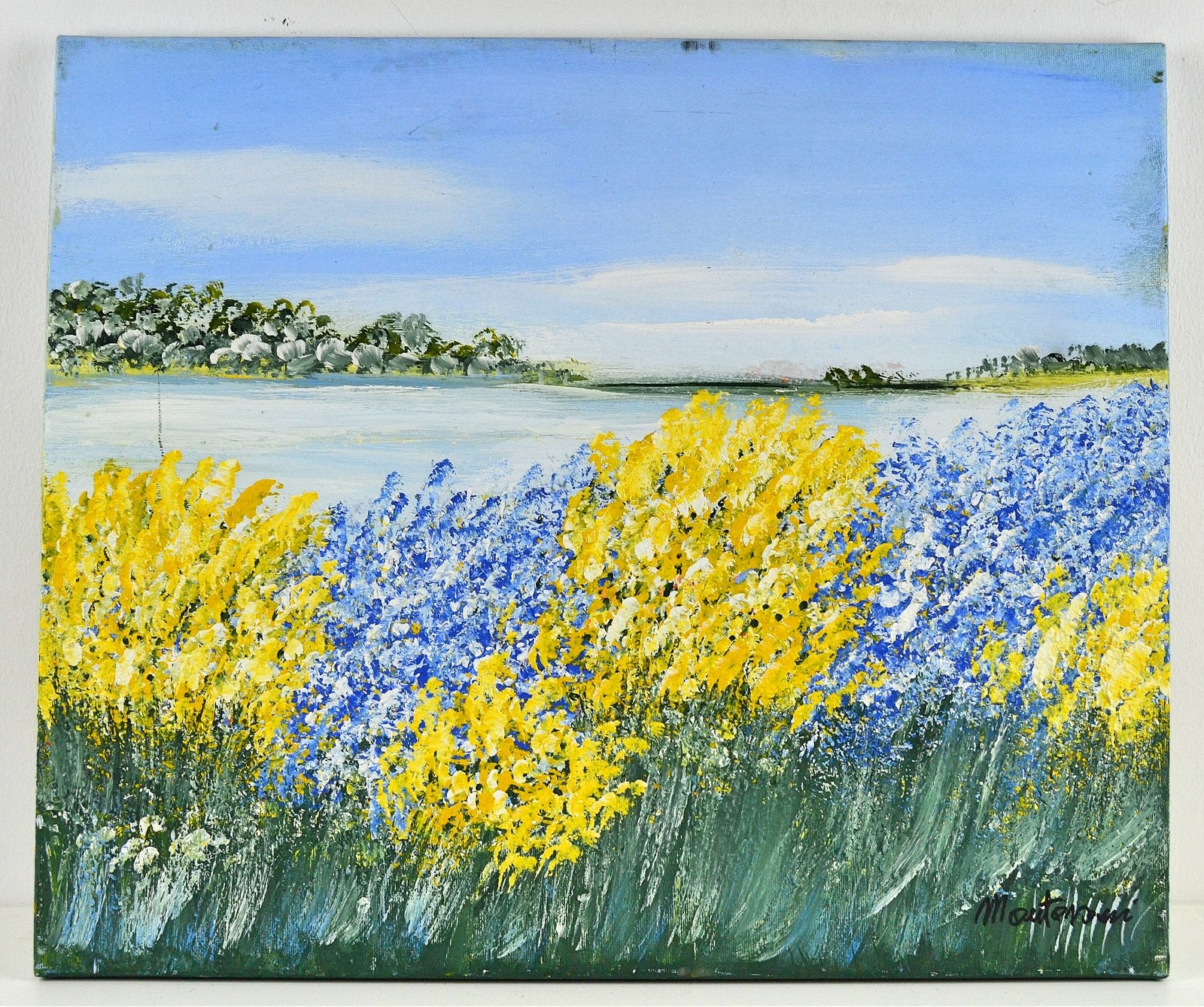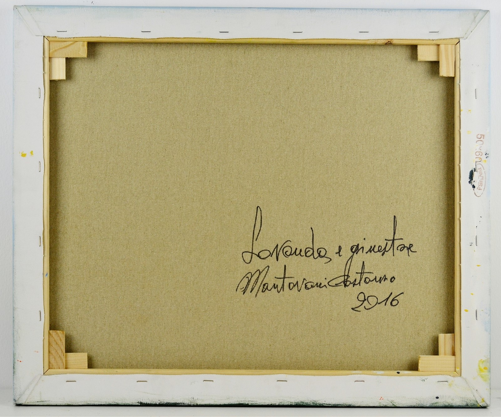 MANTOVANI COSTANZA Lavanda e ginestre. 2016. Olio su tela . Cm 60,00 x 50,00. Firma in basso a destra. Al retro titolo, firma e anno. Lievi difetti.