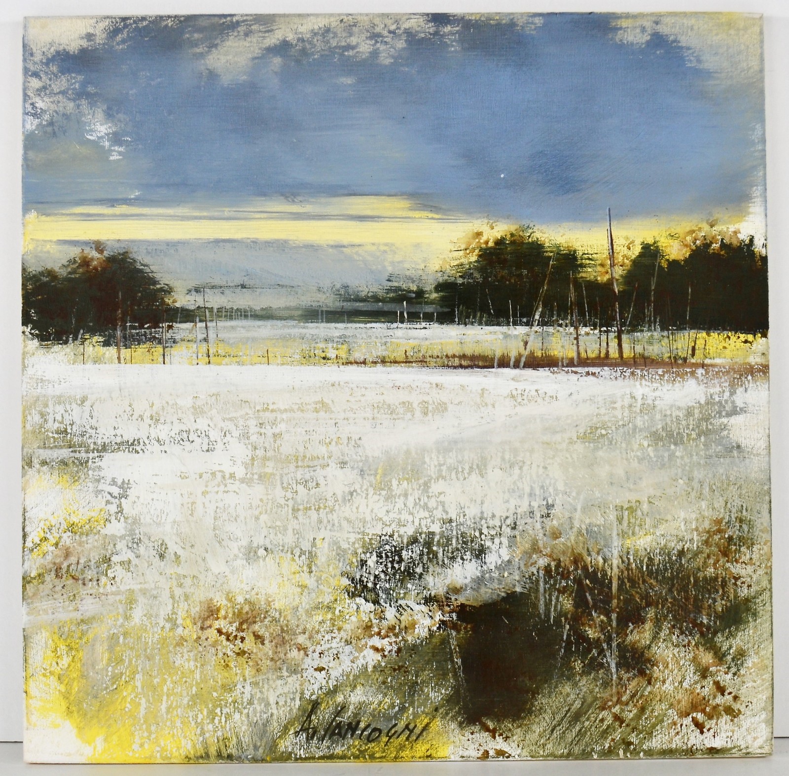 CANCOGNI AGOSTINO (n. 1950) Landscape. 2018. Oil on board. Cm 30,00 x 30,00. Signature lower centre. At the back signature and title. Artist's authenticity certificate on photo. Publication: Agostino Cancogni On the space, p.23.