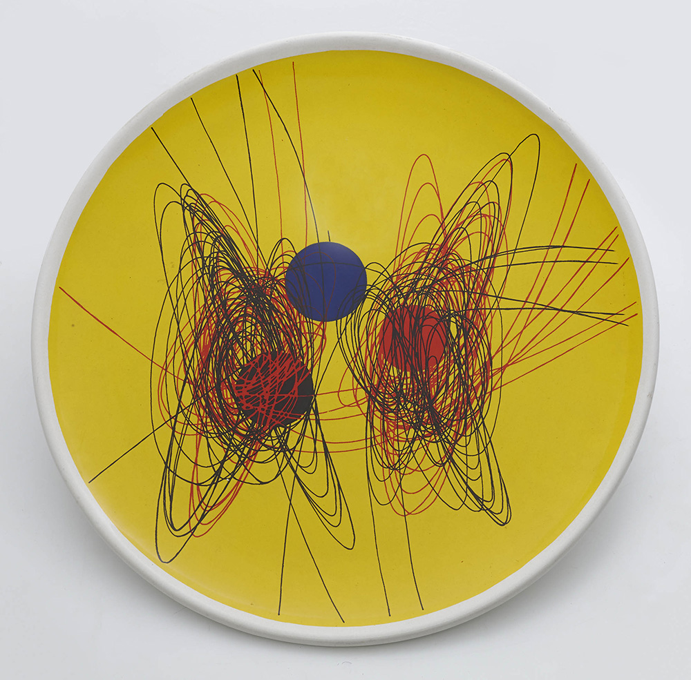 Roberto Crippa 1921 - 1972 Spirali, 1950 Piatto in ceramica Ø41.5 Firma sul retro Es. 19/20 Ceramica realizzata in 20 esemplari Il decalco con la tecnica serigrafica è stato eseguito da Fernando Di Nicola Edizione della Galleria Pace, Milano Ceramiche d'Arte Liberato, Villamagna Provenienza Collezione privata, Milano