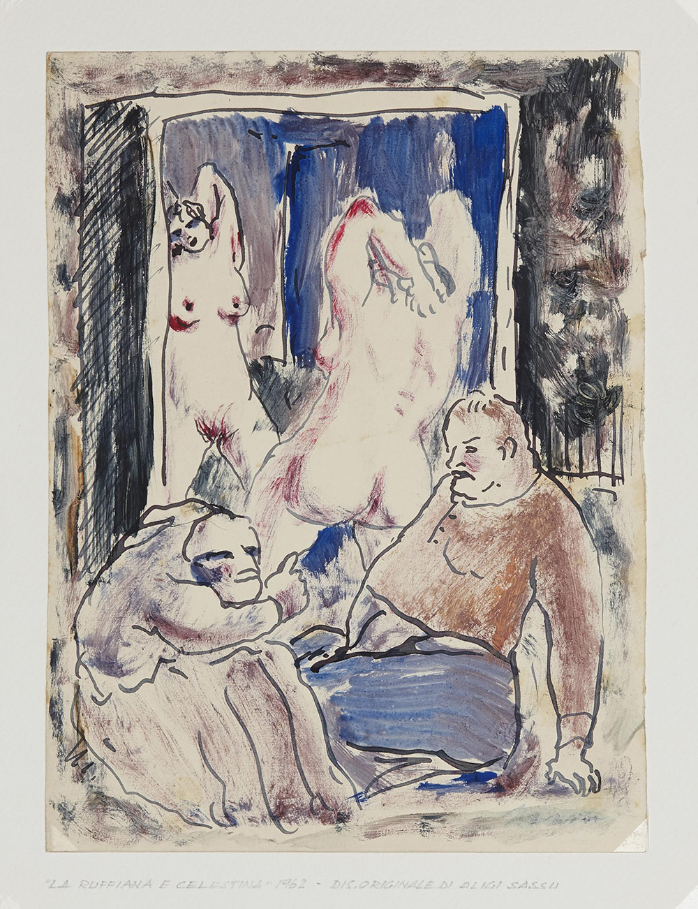 Aligi Sassu 1912 - 2000 La ruffiana e Celestina, 1962 Tecnica mista su carta...