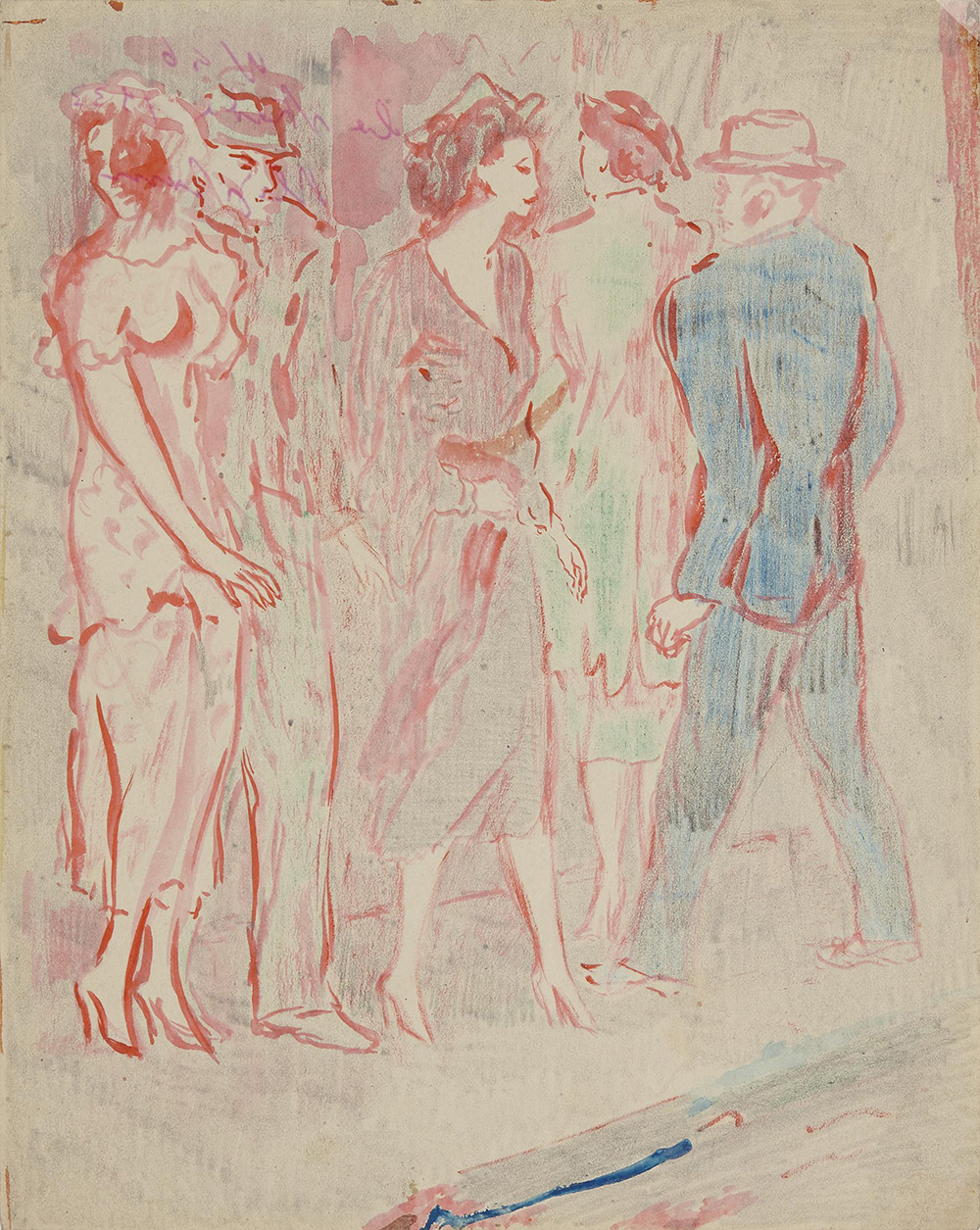 Aligi Sassu 1912 - 2000 La strada, 1933 Tecnica mista su carta H28 x L22 cm (11.02 x 8.66 in. ) Firma, titolo ed anno sul retro Provenienza Collezione privata, Milano Certificato L'opera è accompagnata dal parere verbale positivo dell’Archivio Aligi Sassu.