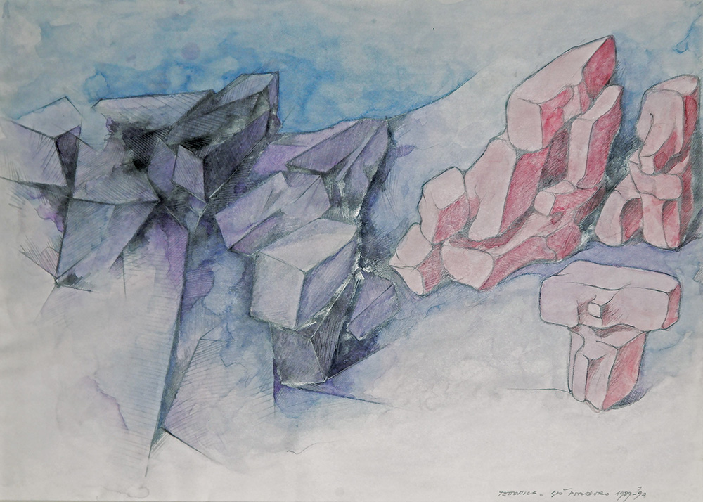 Giò Pomodoro 1930 - 2002 Tettonica, 1989 - 90 China e acquarello su carta H25...