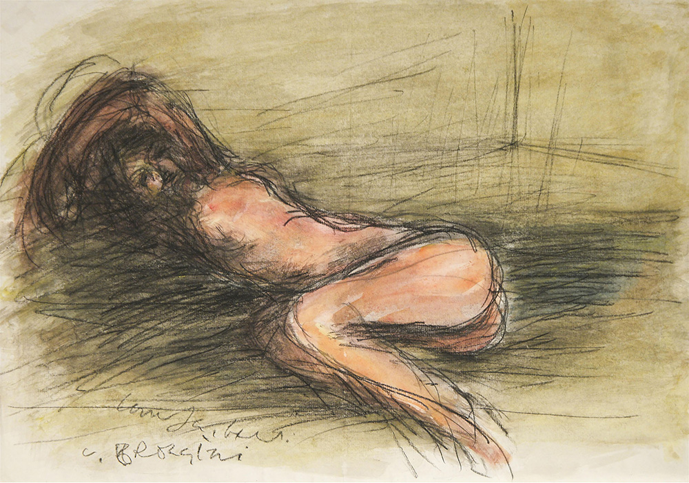 Luigi Broggini 1908 - 1983 Nudo sdraiato, 1955 ca. Carboncino acquarellato...