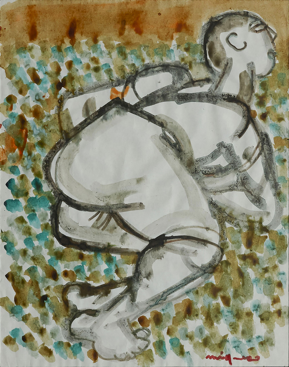 Giuseppe Migneco 1908 - 1997 Contadino Acquarello H28 x L21.5 cm (11.02 x 8.46 in. ) Firma in basso a destra Provenienza Collezione privata, Milano L'opera è incorniciata.