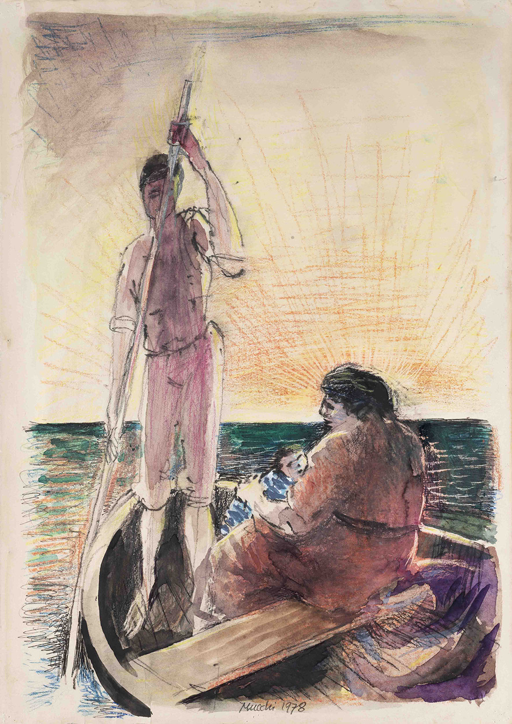 Gabriele Mucchi 1899 - 2002 Levar di sole, 1978 Matita, inchiostro, acquerello e matita colorata H41.2 x L29 cm (16.22 x 11.42 in. ) Firma e data in basso al centro Firma, titolo, tecnica sul retro Provenienza Collezione privata, Milano Letteratura M. Carrà, "Gabriele Mucchi", collaborazione con O. Nicolini, testi di L. Cavallo, C.L. Ragghianti, E. Roters, F. Russoli, R. Tassi, Edizioni Il Mappamondo, Milano, 1992, p. 35 Certificato L'opera è accompagnata da certificato di autenticità dell'artista su fotografia. L'opera è incorniciata.