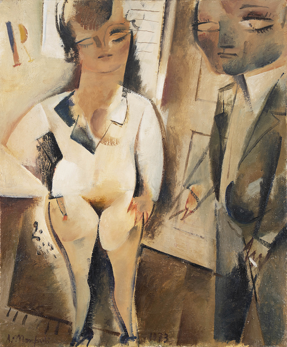 Alberto Manfredi 1930 - 2001 Modella e pittore, 1973 Olio su tela H60 x L50 cm (23.62 x 19.69 in. ) Firma in basso a sinistra Data in basso al centro Provenienza Collezione privata, Macerata Esposizione "Alberto Manfredi, dipinti, acquarelli, acquaforti", Galleria Pananti, Firenze, da sabato 2 febbraio 1974 Letteratura Catalogo della mostra, "Alberto Manfredi, dipinti, acquarelli, acquaforti", Edizioni Galleria Pananti, Firenze, 1974 "Alberto Manfredi, l'eleganza delle forme" , Galleria Marcantoni, Pedaso (FM), 2014 p. 4 L'opera è incorniciata.